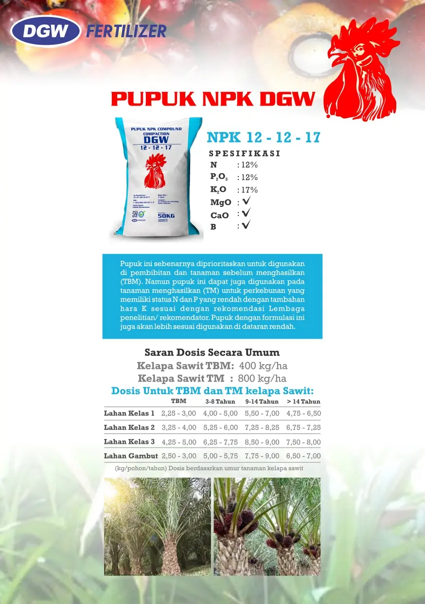 Pupuk yang diformulasikan khusus untuk tanaman sawit. Dengan kandungan 12-12-17 dapat digunakan untuk fase pembibitan dan tanaman belum menghasilkan (TBM). Pupuk ini juga dapat digunakan pada tanaman menghasilkan (TM) untuk perkebunan yang memiliki status N dan P yang rendah dengan tambahan unsur hara K sesuai dengan rekomendasi. Pupuk ini juga lebih sesuai digunakan di dataran rendah.